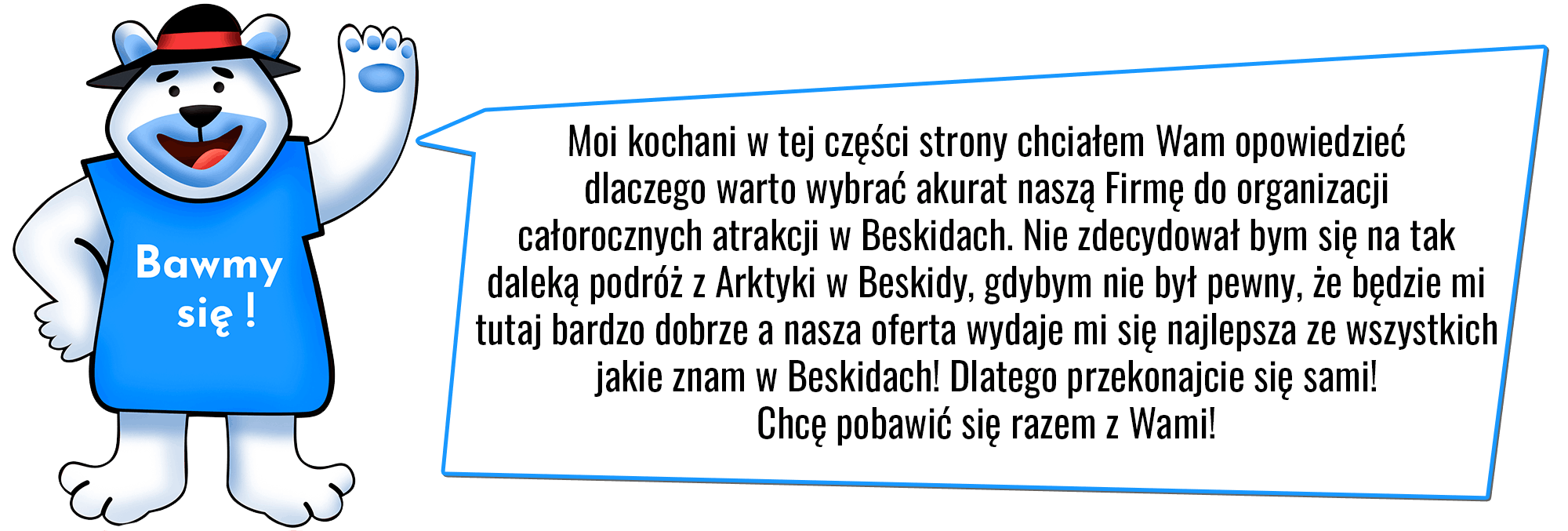 Nasza Firma wraz z największym biurem podróży w Beskidach - Beskidzkim Centrum Turystyki www.beskidytravel.pl oraz Żywieckim Centrum Turystyki i Kultury www.zywiec.turystyka.pl zorganizuje dla Was imprezę uszytą pod Wasze oczekiwania. To co nas wyróżnia to kompleksowość w załatwieniu wszystkich możliwych atrakcji turystycznych. Oprócz organizacji kuligu zorganizujemy dla Was noclegi w sprawdzonych hotelach / pensjonatach / kwaterach prywatnych / domkach góralskich / gospodarstwach agroturystycznych, transport na naszą wspólną imprezę kuligową z dowolnego miejsca w Polsce i nie tylko (busy, autokary, taksówki), wycieczki jednodniowe z Beskidów, pakiet ubezpieczeniowy podczas całej imprezy turystycznej www.ubezpieczeniawzywcu.pl, atrakcje z adrenaliną - quady, jazdę jeepami OFF ROAD, strzelanki paintballowe, skutery śnieżne, olimpiady sportowe, warsztaty regionalne itp. www.goralomania.pl